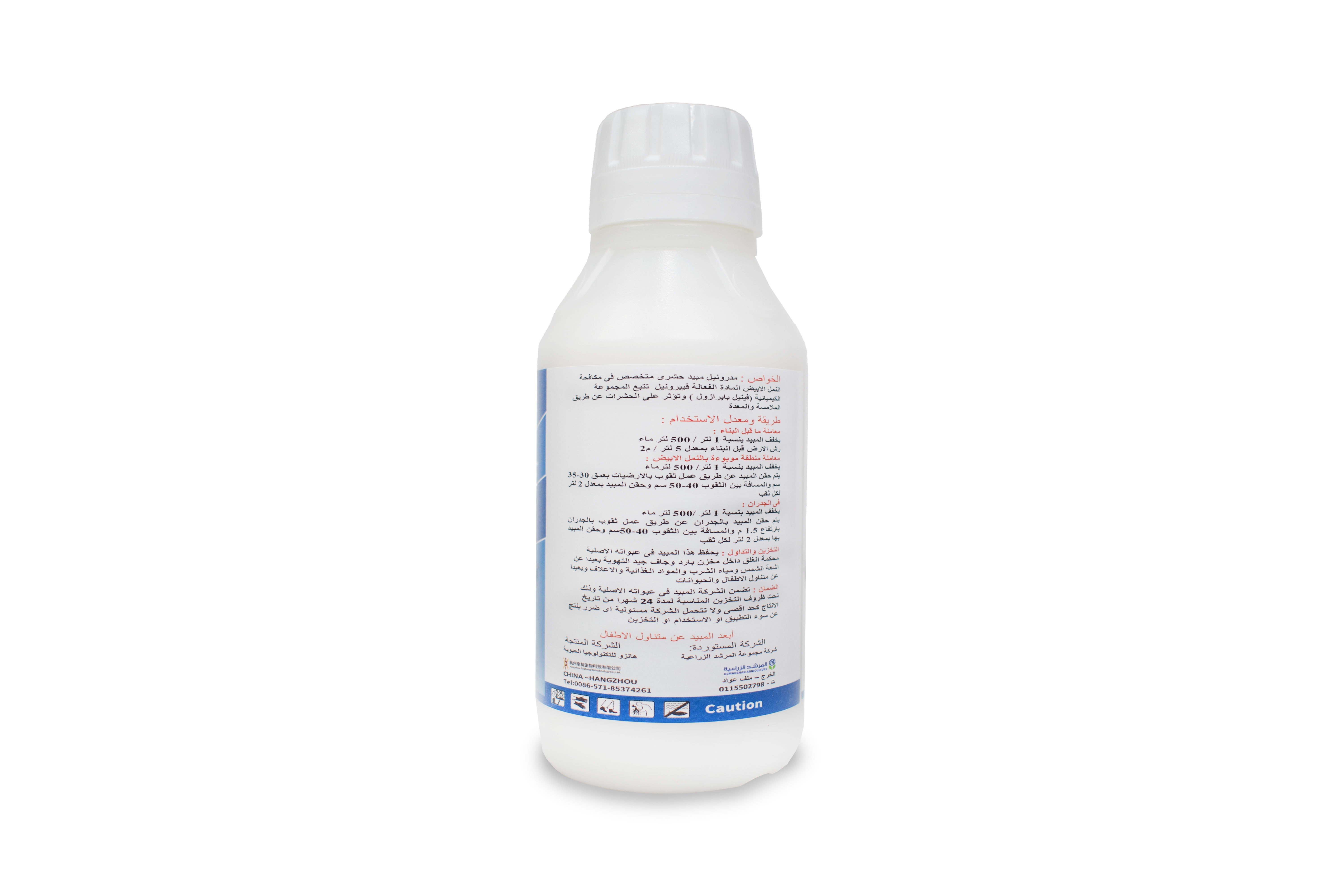 • يجب التخفيف بنسبة 1 لتر من المبيد لكل 500 لتر من الماء، ويجب رش الأرض قبل البناء بحوالي 5 لتر لكل متر مربع.