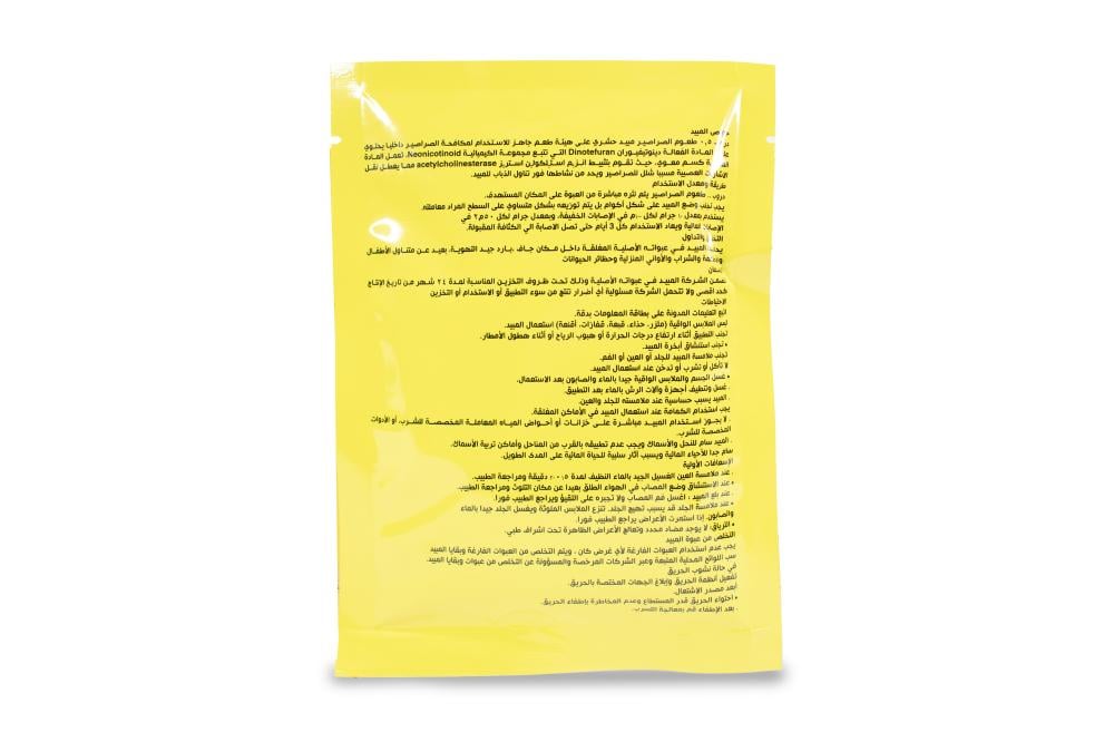 طُعم فعال للقضاء على الصراصير داخل المباني والمنازل والمطاعم والمستودعات. يحتوي على المادة الفعالة دينوتيفوران (Dinotefuran) بنسبة 0.5%، وهي من مجموعة Neonicotinoid التي تعمل على تعطيل الجهاز العصبي للحشرات مما يؤدي إلى شللها وموتها بسرعة. يتميز بتركيبته الجاذبة التي تجذب الصراصير لتناوله بسهولة، مما يؤدي إلى انتقال التأثير إلى باقي المستعمرة.