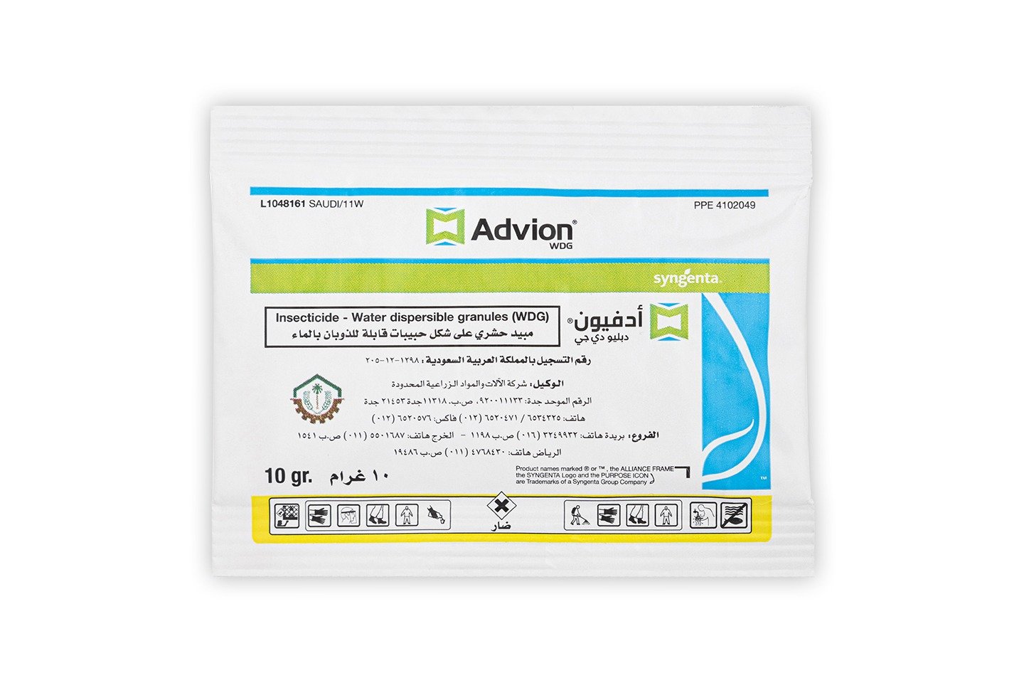 ادفيون دبليو دي جي (Advion WDG) هو مبيد حشري فعّال يُستخدم لمكافحة مجموعة واسعة من الحشرات المزعجة مثل الصراصير، البق، الذباب، والنمل. يتميز بتركيبته القابلة للذوبان في الماء، مما يسهل استخدامه ورشه في أماكن تواجد الحشرات بكفاءة عالية.