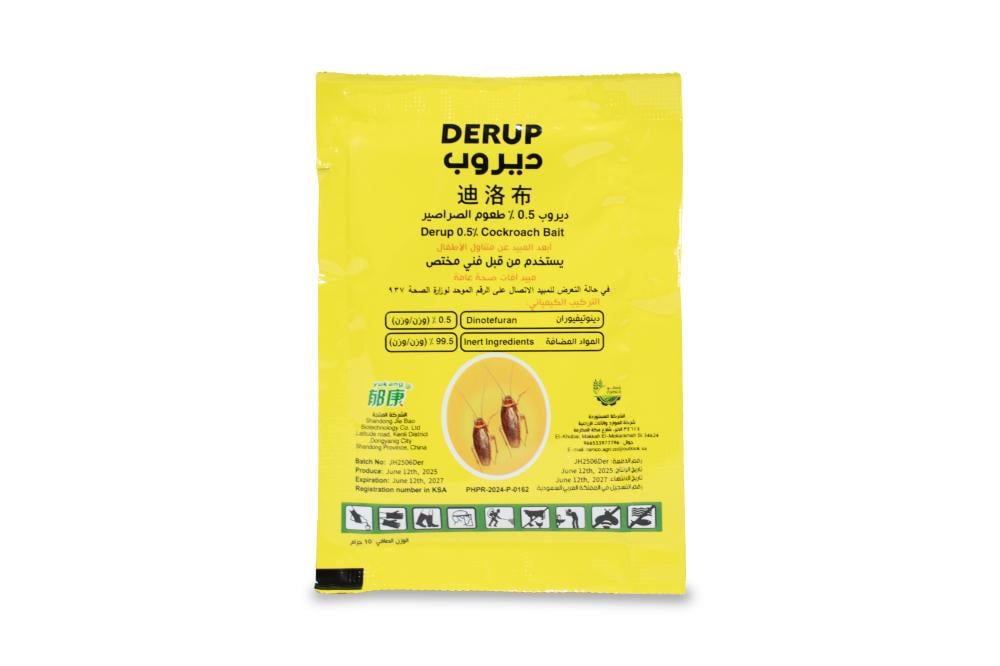 طُعم فعال للقضاء على الصراصير داخل المباني والمنازل والمطاعم والمستودعات. يحتوي على المادة الفعالة دينوتيفوران (Dinotefuran) بنسبة 0.5%، وهي من مجموعة Neonicotinoid التي تعمل على تعطيل الجهاز العصبي للحشرات مما يؤدي إلى شللها وموتها بسرعة. يتميز بتركيبته الجاذبة التي تجذب الصراصير لتناوله بسهولة، مما يؤدي إلى انتقال التأثير إلى باقي المستعمرة.