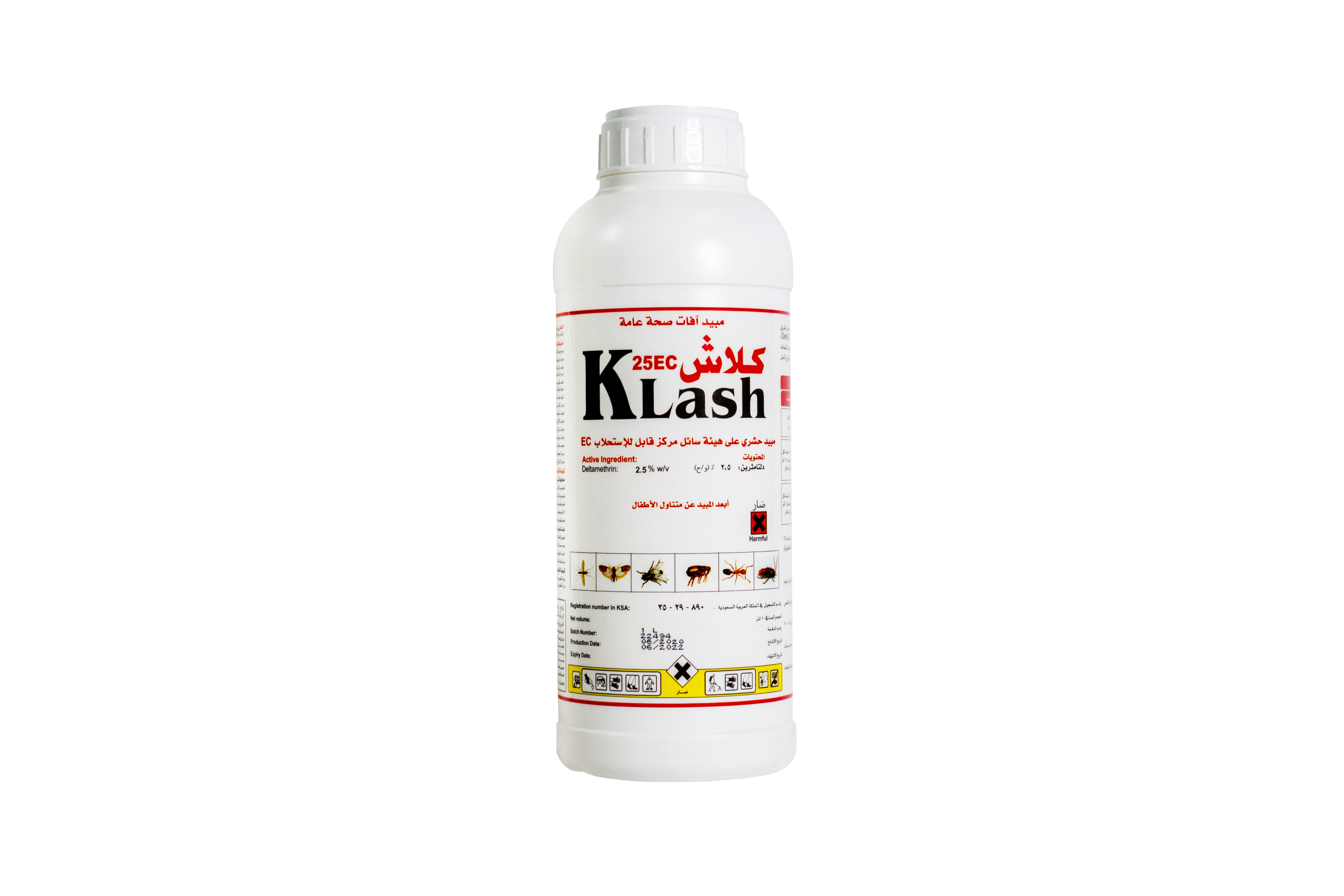 كلاش 25 اس سي مبيد حشري غير جهازي يعمل بالملامسة وعن طريق المعدة له تاثير صاعق وذو اثر باقي طويل يخفف بمذيب مثل الديزل الكيروسين او الماء ويستخدم لمكافحة الذباب البعوض والعديد من الحشرات الزاحفة كالصراصير وبق الفراش و كما يستخدم لمكافحة يرقات الذباب .