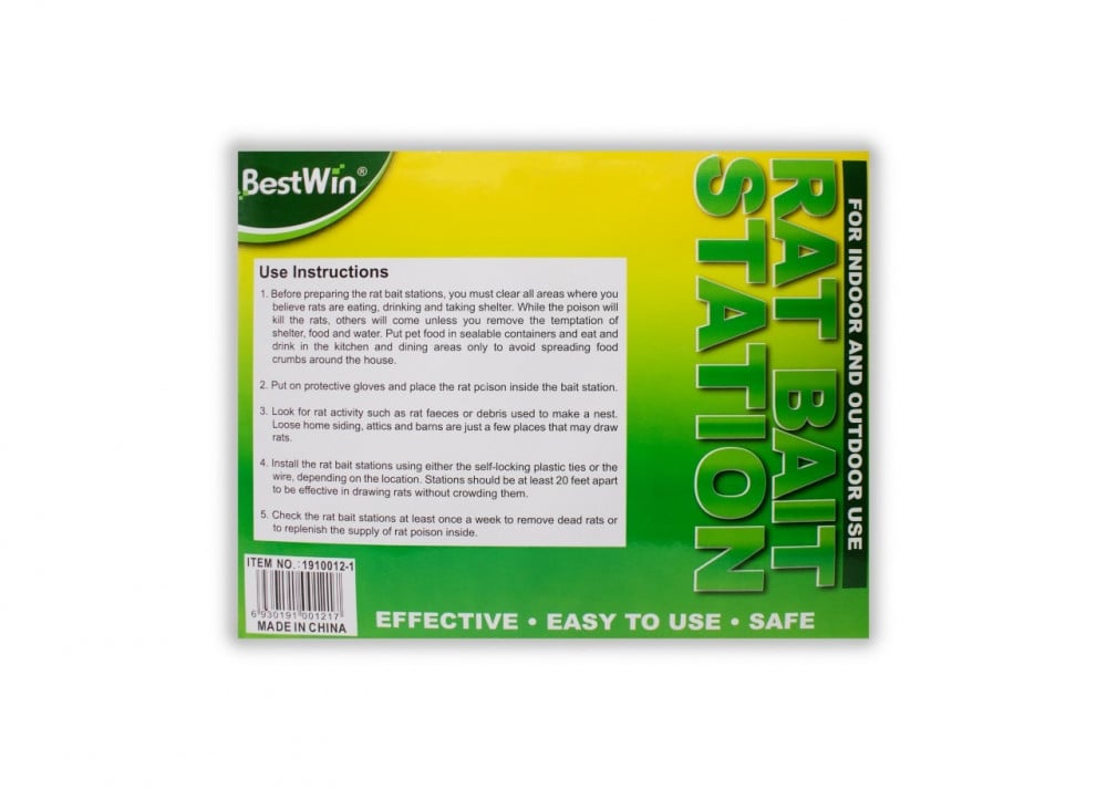 They are a safe and effective way to control rat infestations in homes or buildings. These stations are placed in areas where rats are active, such as corners, behind furniture, or near building entrances. Poison bait is placed inside the station, allowing rats to enter and consume the bait without endangering children or pets. It is recommended to check the stations periodically for refilling or cleaning, while keeping the area clean and sealing any entry holes to ensure long-term effectiveness.